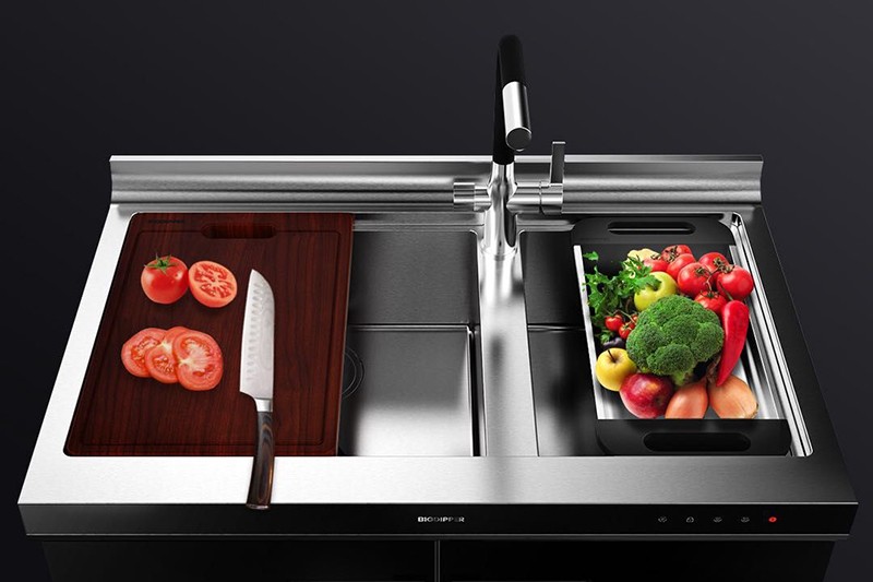 上層“濕”區域為清洗+切配+瀝水三大基礎功能,給家庭提供一個日?;顒涌臻g。