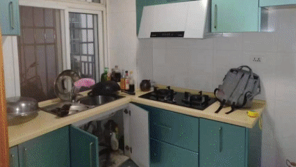 話不多說,我們先來看一下改造之前的廚房吧。老套的廚房搭配,綠色真的很老氣,瓷磚發黃發黑,油煙機陳舊損壞、裝修布局過時......這樣的廚房你還會有下廚的欲望嗎?
