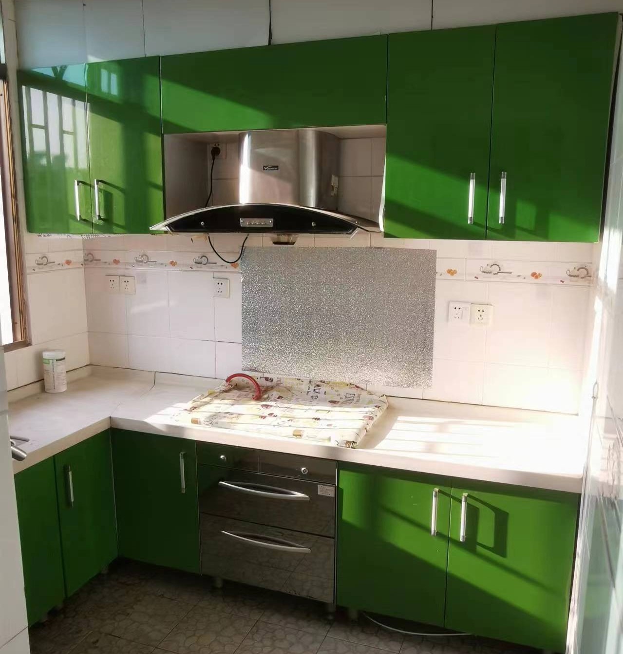 拆除完成后,就開始櫥柜和電器安裝了,電器選用的是“大師級真蒸烤”北斗星集成灶A5GZK。