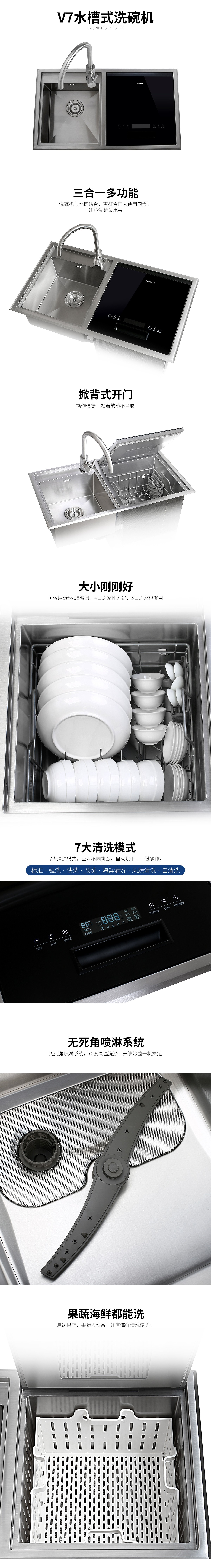 三合一多功能:洗碗機(jī)與水槽結(jié)合,更符合國人使用習(xí)慣,還能洗蔬菜水果。